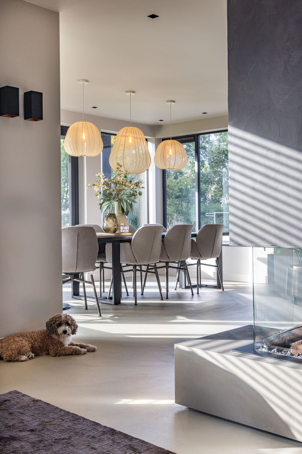 Bronzen details en donkere houtaccenten geven het interieur nét dat beetje extra luxe, terwijl het vele licht en de open indeling zorgen voor een frisse, uitnodigende uitstraling. Een stijlvol, warm en comfortabel thuis — met karakter in elke hoek.